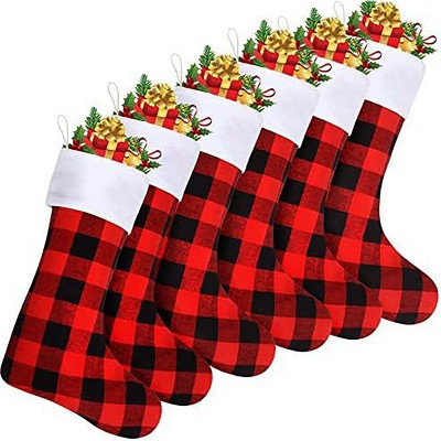 Aoibox 6 Pack 18 Inch Large Red Black Buffalo Plaid Christmas Stockings Bulk Fireplace Hanging Stockings for Family Holiday Decor