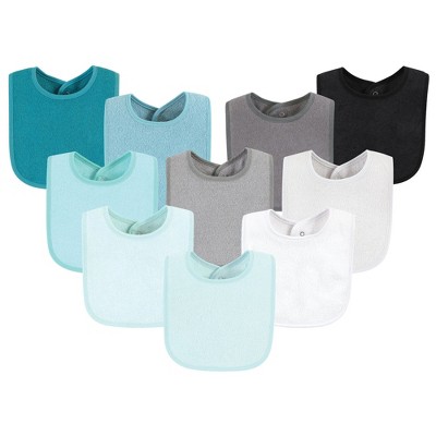 Hudson Baby Drooler Bib with Waterproof Lining, Gray Mint, One Size