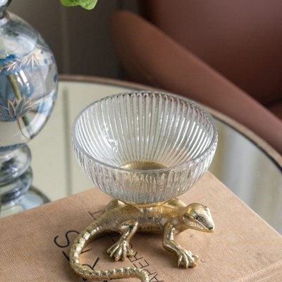 Racxily 5x5x4.5" Gold Lizard Pedestal Bowl with Ribbed Glass Dish