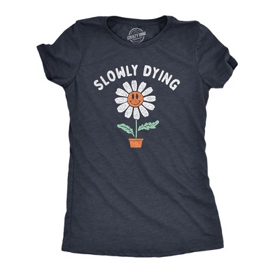 Womens Slowly Dying T Shirt Funny Smiling Happy Flower Sarcastic Joke Tee for Ladies - Crazy Dog Women's T Shirt For Earth Day