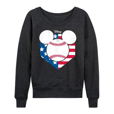 Women's - Disney - Mickey Mouse Baseball Diamon Head USA Lightweight French Terry Wide Neck Long Sleeve Graphic Shirt