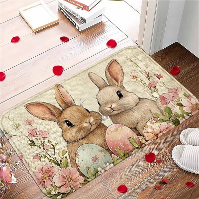 Lomsoe 1pc Easter Pattern Flannel Carpet, Suitable for Bedroom, Living Room, Kitchen, Bathroom, Entrance - Indoor Entryway Decor.