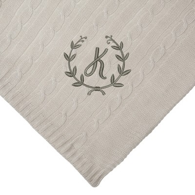 Personalization Mall Floral Wreath Initial Cable KnitThrow Blanket, Tan, 50"x60"
