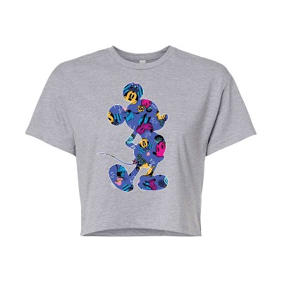 Women's - Disney - Mickey Silhouette Expressive Pattern Cropped Graphic T-Shirt