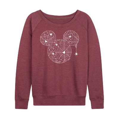 Women's - Disney - Mickey Head Solid Geo Lightweight French Terry Wide Neck Long Sleeve Graphic Shirt