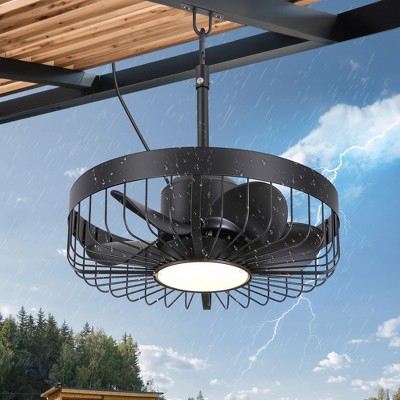 Airsurfer 19 Inch Caged Ceiling Fan with Light and Remote, Waterproof Ceiling Fan with Reversible DC Motor, Memory Function, Enclosed Fan for Bedroom