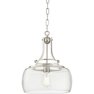 Franklin Iron Works Charleston Brushed Nickel Pendant Light 13 1/2" Wide Modern LED Clear Glass for Dining Room Kitchen Island