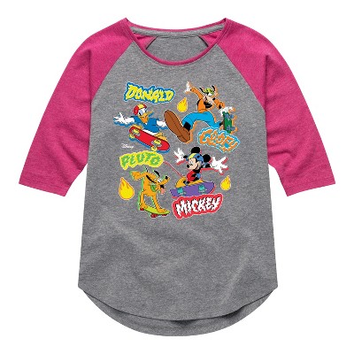 Girls' - Disney - Mickey Mouse & Friends Skater Crew Shirt Tail Raglan Graphic T-shirt