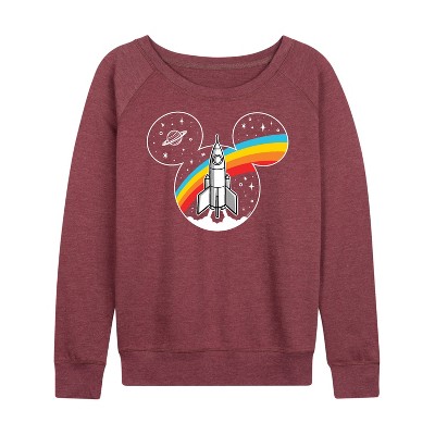 Women's - Disney - Retro Space Ear Silhouette with Rocket Lightweight French Terry Wide Neck Long Sleeve Graphic Shirt