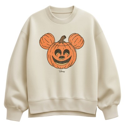 Women's - Disney - Mickey Head Pumpkin Oversized Fleece Crew Sweatshirt