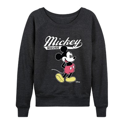 Women's - Disney - Mickey Mouse Lightweight French Terry Wide Neck Long Sleeve Graphic Shirt