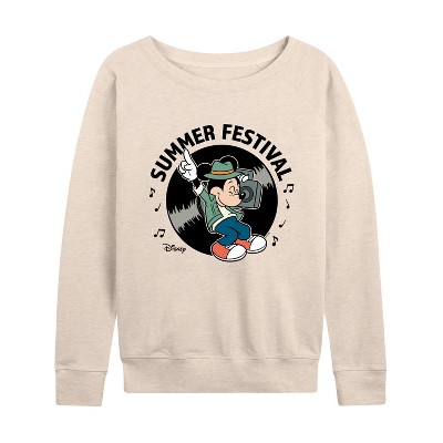 Women's - Disney - Mickey & Friends Lightweight French Terry Wide Neck Long Sleeve Graphic Shirt