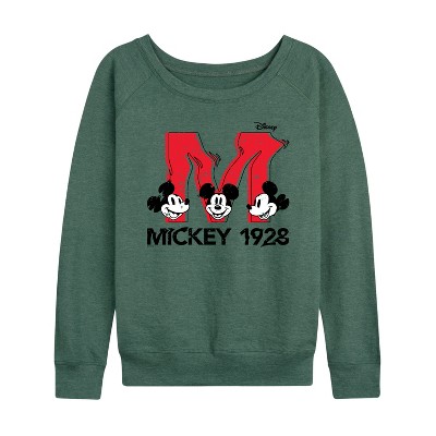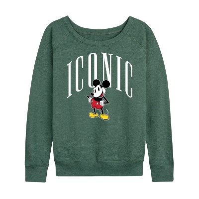 Women's - Disney - Iconic Mickey Lightweight French Terry Wide Neck Long Sleeve Graphic Shirt