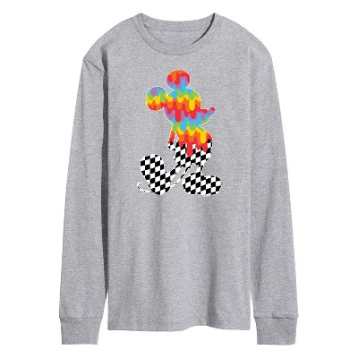 Men's - Disney - Mickey Mouse Rainbow/Checker Silhouette Long Sleeve Graphic T-Shirt