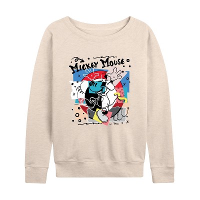 Women's - Disney - Mickey Mouse Graffiti Lightweight French Terry Wide Neck Long Sleeve Graphic Shirt