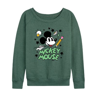 Women's - Disney - Mickey Mouse Lightweight French Terry Wide Neck Long Sleeve Graphic Shirt