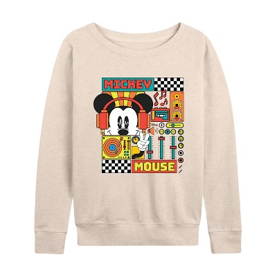 Women's - Disney - Mickey Mouse Rhythm Waves Lightweight French Terry Wide Neck Long Sleeve Graphic Shirt
