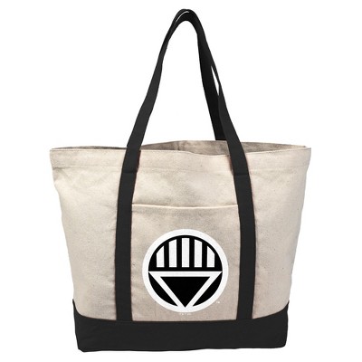 Green Lantern Blackest Night Black Lantern Logo Canvas Tote Bag With External Pocket, Reusable Shoulder Bag for Shopping, School, Beach, Black
