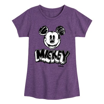 Girls' - Disney - Mickey Mouse Sketched Fitted Short Sleeve Graphic T-Shirt