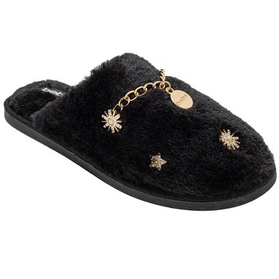bebe Women’s Slippers - Plush House Slippers with Faux Fur and Gold Chain Accent
