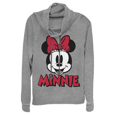 Junior's Mickey & Friends Smiling Minnie Mouse Portrait Cowl Neck Sweatshirt