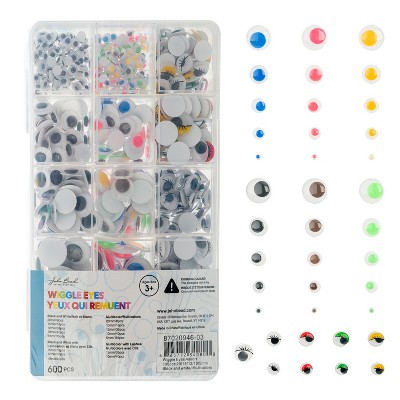 John Bead 600ct Assorted Googly Eyes for Crafts, Multi Colors and Sizes Wiggle Eyes Combo Pack for DIY (5 Sizes, 2 Designs)