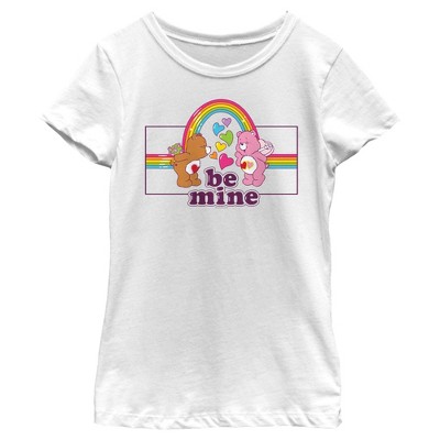 Juniors Womens Care Bears Valentine's Day Tenderheart Bear and Love-a-Lot Bear Be Mine Rainbow T-Shirt