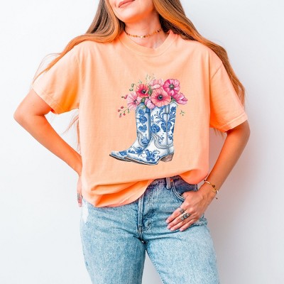 Simply Sage Market Cowboy Boots Floral Garment Dyed Tee