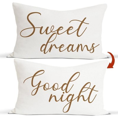 Lomsoe 2pcs White Linen Throw Pillow Covers for Bed, Sweet Dreams Good Night Lumbar Pillowcase Decorate Bedroom Guest Room.