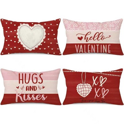 Lomsoe 4pcs Happy Valentines Day Pillow Covers Wedding Anniversary Throw Pillow Covers Red Love Heart Covers Pillow.