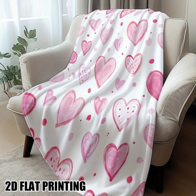 Lomsoe 1pc Flannel Hearts Blanket,Lightweight for Nap, Travel, Office, Outdoors,Valentine's All-Season Design.