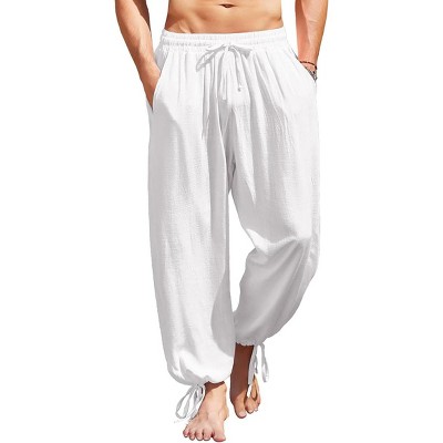 COOFANDY Men's Cotton Linen Pants Casual Harem Pants Elastic Waist Beach Boho Yoga Trousers