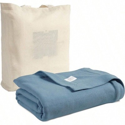 Cooling Warm Cotton Twin Blanket 68"x90" Light Blue, Lightweight for All Seasons