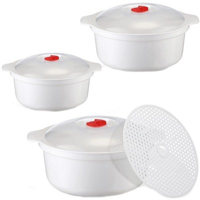 Itopfox 3-Piece Microwave Bowls with Lids and Steam Rack, Assorted Sizes for Soup, Noodles, Leftovers, Dishwasher Safe, Dorm & Kitchen Essentials