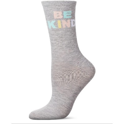 Memoi Women's Be Kind Multicolor Block Letter Crew Sock Gray