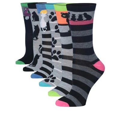 Tipi Toe Women's 12-Pairs Fashion Lightweight Crew Colorful Striped Cat Socks For Women