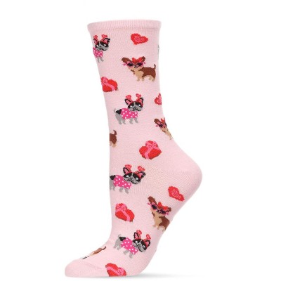Memoi Puppy Love & Gift Bamboo Blend Crew Socks Light Pink 9-11
