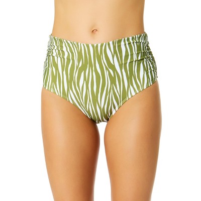 Women's Mod Tropical Fold Over High Waist Shirred Bikini Swim Bottoms