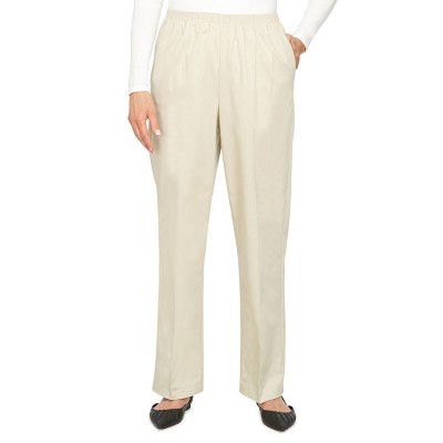 Alfred Dunner Women's Classic Allure Slim Fit Pant With Elastic Comfort Waistband , Tan , 12