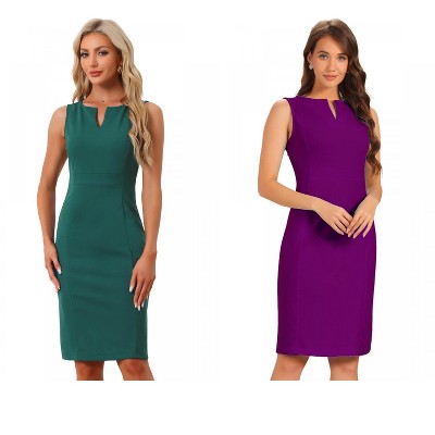 INSPIRE CHIC Women's V Neck Office Sleeveless Bodycon Midi Pencil Dress 2 Packs