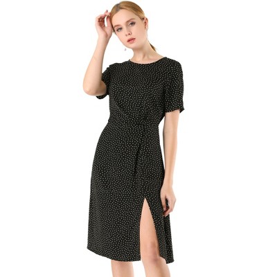 Allegra K Women's Ruffles Short Sleeve Asymmetrical Neck Pleated Hem Midi Dress
