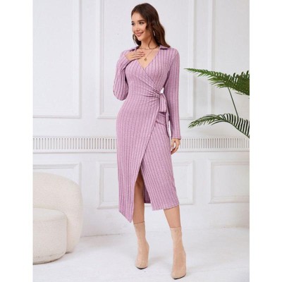 Coolmee Womens Midi Dress Sweetheart Bodycon Velvet Long Sleeve Side Slit Dresses