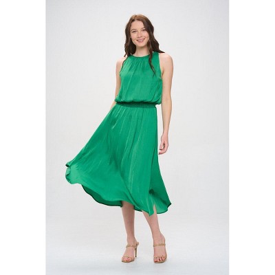 WEST K Women's Viviana Flowy Smocked-Wasit Satin Tank Midi Dress