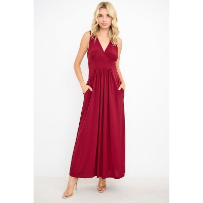 Coolmee Women's Business Casual Shirt Dress Cross Lapel V Neck Solid Color Dresses Long Sleeves Accordion Pleated Midi Dresses with Belt XL Red