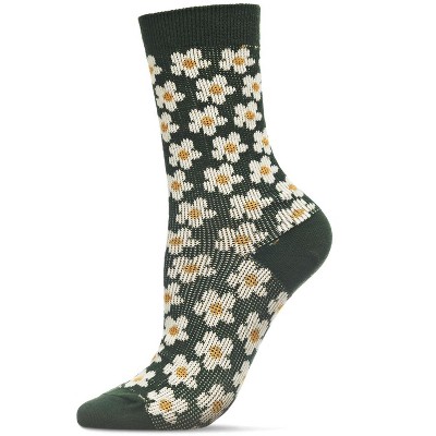 Memoi Women's Mod Vintage Style Sweet Daisy Cotton Blend Crew Sock