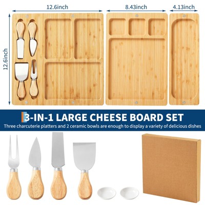 Charcuterie Boards Set, 25.2 in ¡Á12.6 in Large Bamboo Cheese Board Set, Cheese Platter Gift for House Warming New Home, Wedding Couple