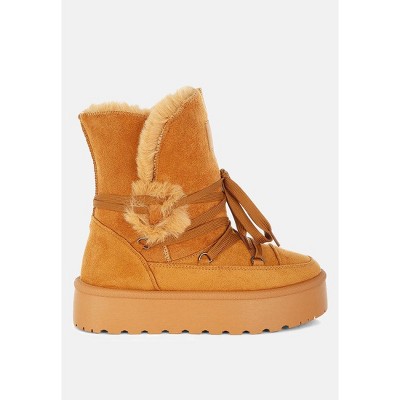 Womens Snow Boots Red Fur Warm Zipper Winter Shoes
