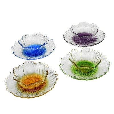 Classic Touch Set 4 Flower Shaped Dessert Plates-Colored Center-8.25"D
