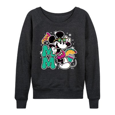 Women's - Disney - Mickey Mouse California Lightweight French Terry Wide Neck Long Sleeve Graphic Shirt