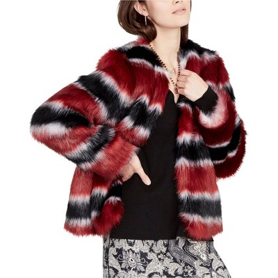 Rachel Roy Womens Striped Faux-Fur Jacket
